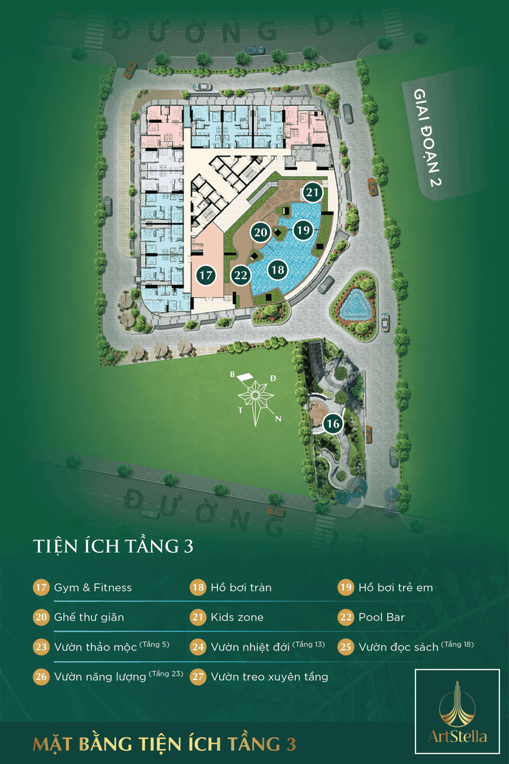 Tọa lạc tại Phường Đông Hòa, TP. HCM, Art Stella mang đến cho cư dân hơn 99 tiện ích đẳng cấp, từ bể bơi vô cực đến vườn thiền trên cao, tất cả được thiết kế để chăm sóc trọn vẹn thân – tâm – trí. Đây chính là biểu tượng cho phong cách sống thượng lưu, cân bằng và tinh tế, ngay giữa lòng đô thị năng động.