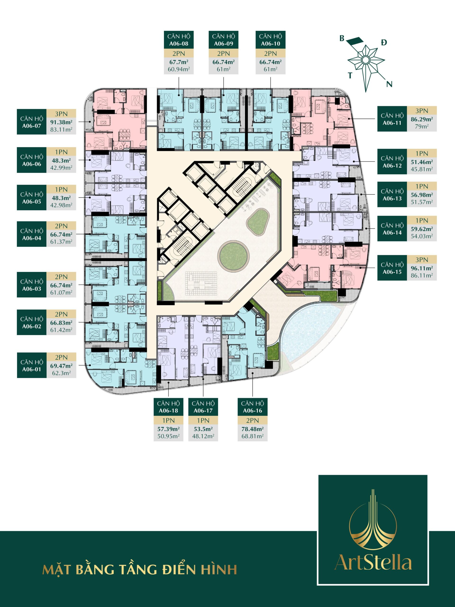Art Stella mang đến các loại hình căn hộ đa dạng, từ 1 phòng ngủ, 2 phòng ngủ, đến các căn hộ 3 phòng ngủ, đáp ứng nhu cầu của nhiều đối tượng khách hàng, từ người độc thân, các cặp đôi trẻ, đến gia đình đa thế hệ. Các căn hộ được thiết kế tối ưu, tận dụng tối đa diện tích để tạo nên không gian sống thoải mái và tiện nghi.
