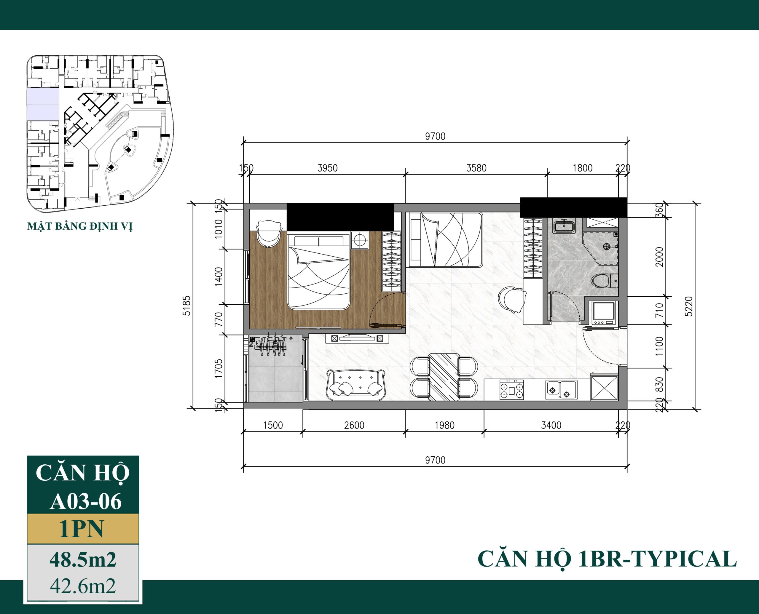 | Diện tích thông thủy | 42.6 m² |