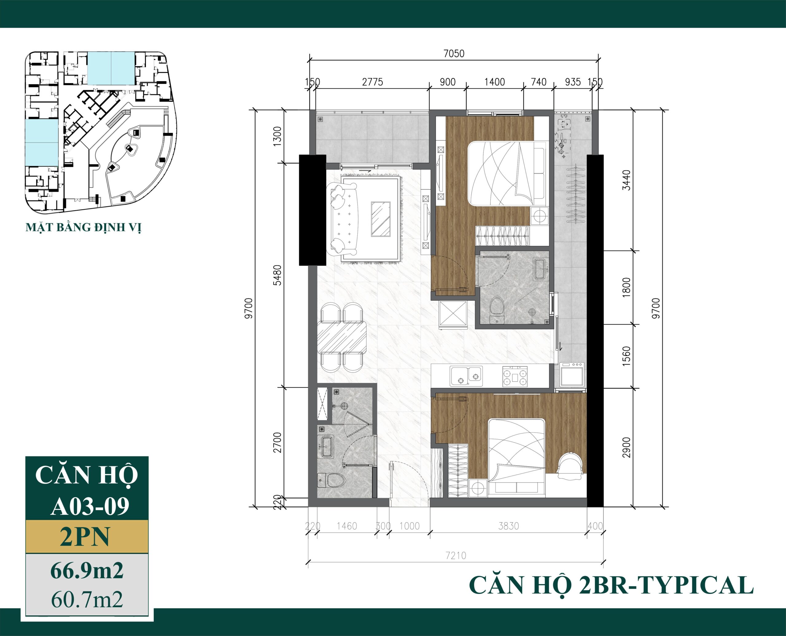| Diện tích thông thủy | 60.7 m² |